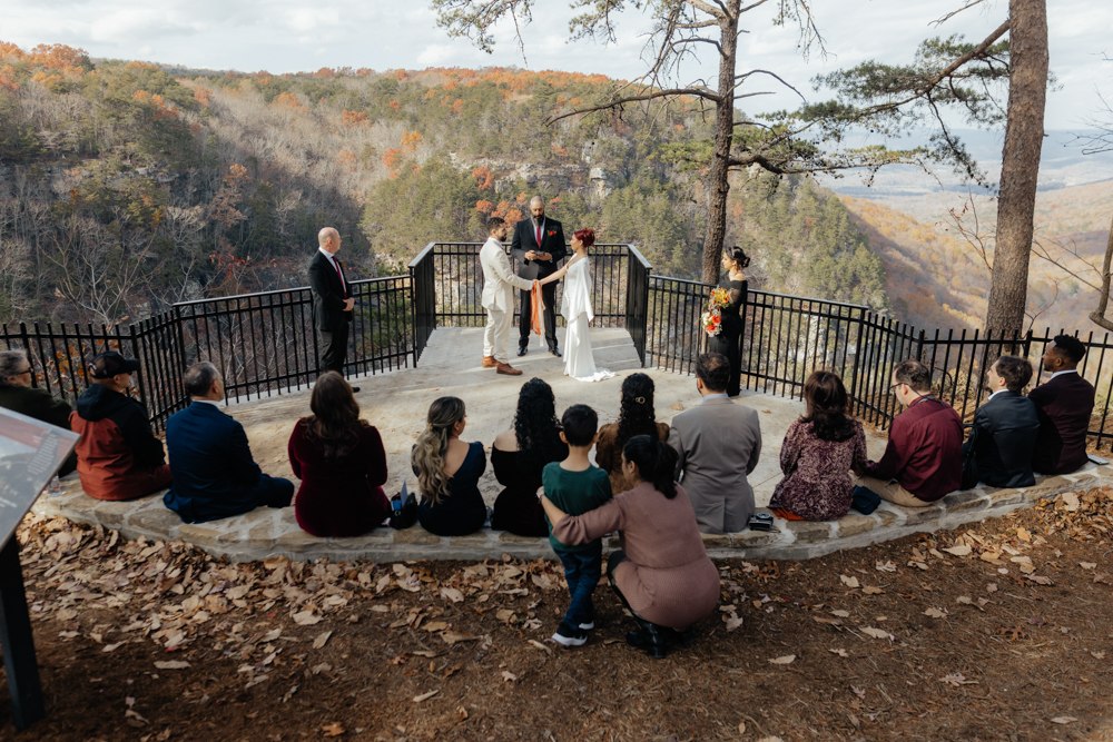 Inside a Georgia state park, Cloudland Canyon is about 35 minutes from downtown Chattanooga making it a top hiking spot for the area. Being such a large state park, there are ample locations with picturesque backdrops for your pictures. We do the ceremonies at the top, with the option to hike to Cherokee Falls for additional pictures. With tons of parking, bathrooms, and accessible views, this location would be great for either a small elopement or larger micro wedding.